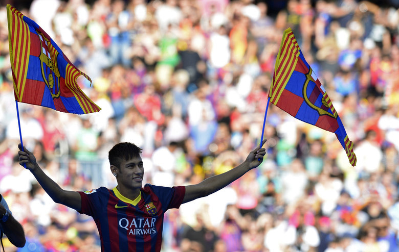 Neymar Jr. foi apresentado ao Barcelona nesta segunda-feira (3). A previsão é que o jogador faça a sua estreia em um amistoso contra o Santos, que está com data prevista para acontecer no dia 2 de agosto. Entretanto, para Neymar estar em campo ele precisa de um 'ok' da CBF. Na apresentação, Neymar ainda arriscou um catalão: "Visca al Barça!", que em português significa vamos, Barça!